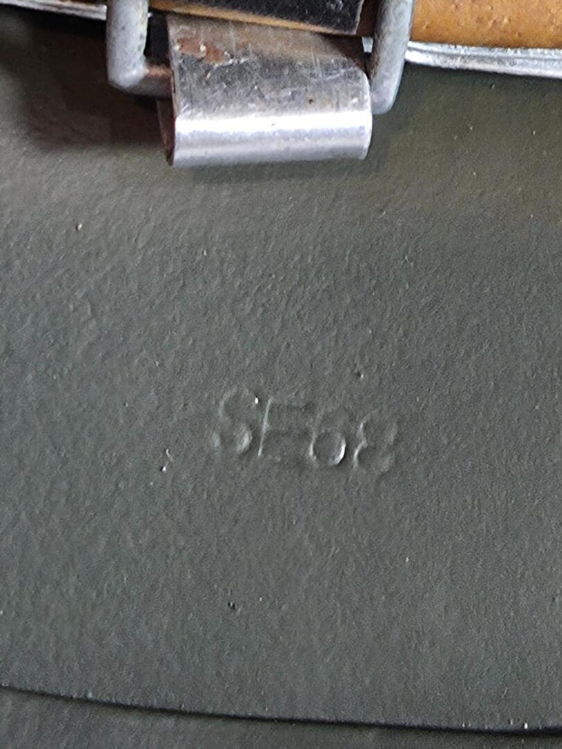 This original restored German M35 helmet is SE68 marked indicating the shell was made by Sachsishe Emaillerwerke, Lauter. This factory was the first to produce German M35 helmets in 1935, and this example was one of them. The heating lot number puts the production in mid 1935. The helmet was fully stripped of post-war paint, then repainted the correct shade of smooth light apple green. The dome has been marked with the proper inspector’s ink stamp. The helmet’s Heer decal is the proper variant for SE/ET helmets. Both decals have been applied with period resin.